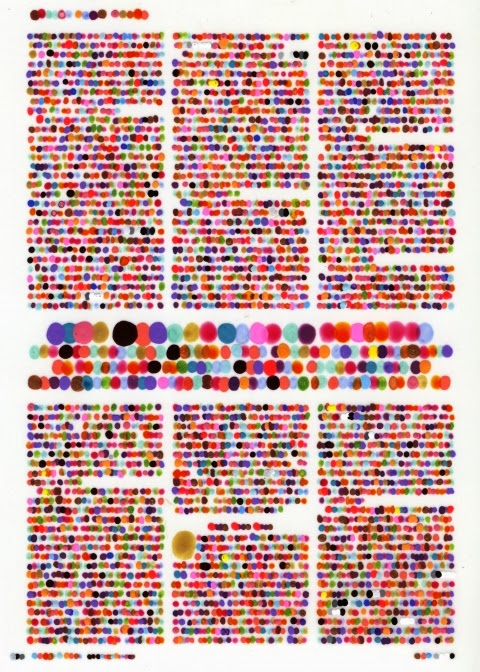 comments: lauren's work is focused on the beauty in mass produced media and how they are becoming obsolete because of technology. the paintings shown here are made by placing frosted mylar over a magazine page. she then uses a color code assigned to each letter to paint a loose representation of the type and layout of the magazine spread. she intends for this work to impart of feeling of nostalgia for print media and the physical quality of it as we continue to move toward more and more electronic media. please check out the link above for more of her work. you'll be glad you did!